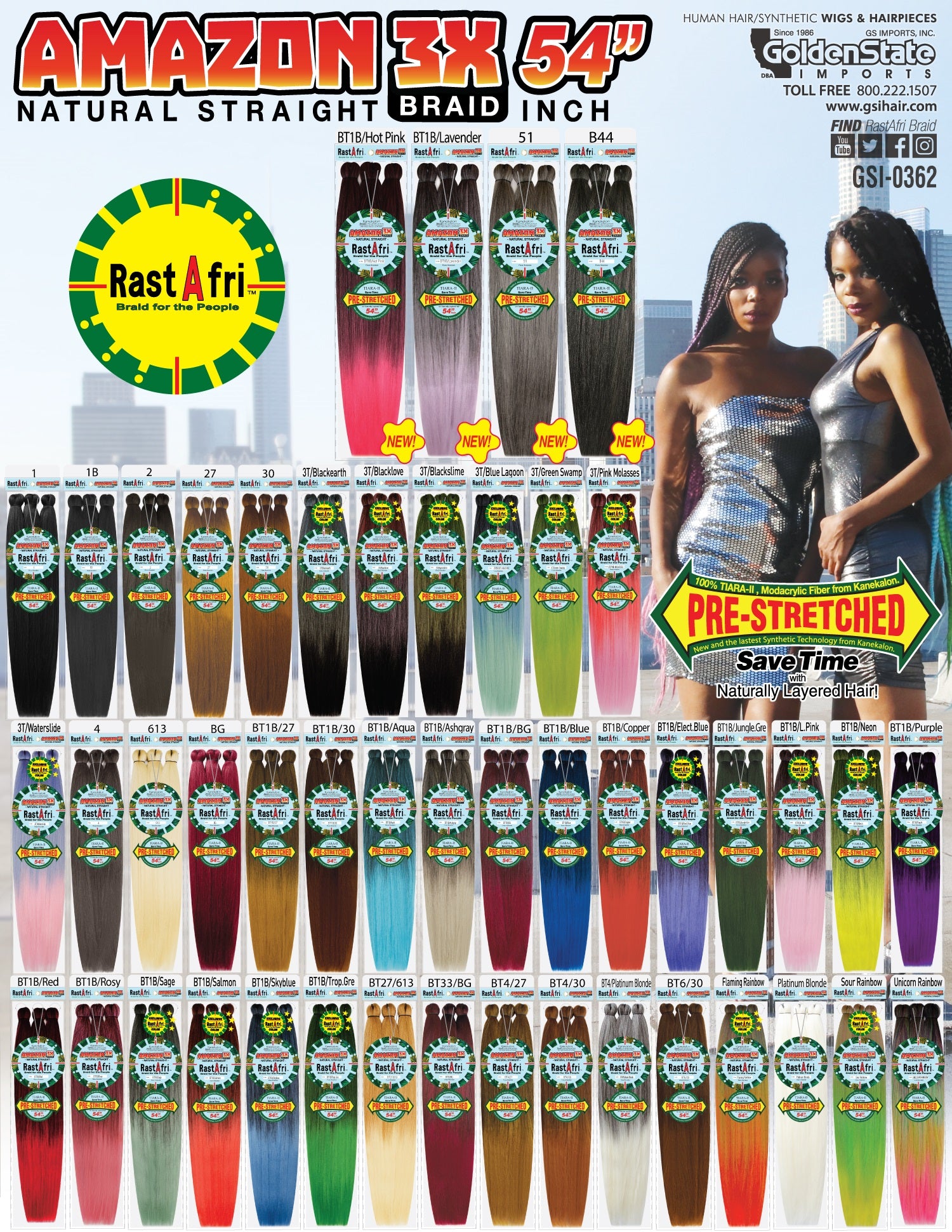 RastAfri Amazon braids, 3X 54 inch Pre-Stretched Braids.